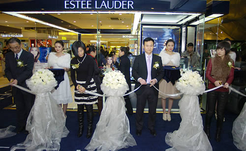 國芳百貨領(lǐng)導及雅詩蘭黛公司領(lǐng)導為雅詩蘭黛開業(yè)剪彩