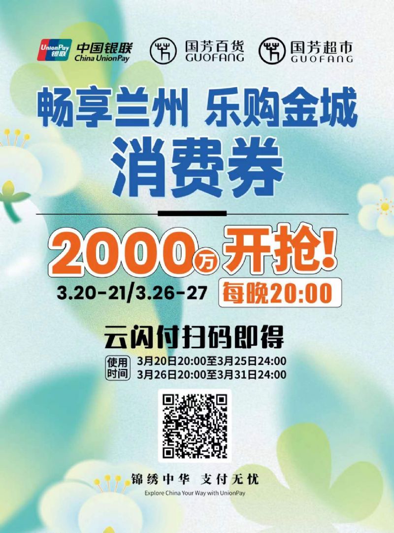 本次消費券具體發(fā)放時間為3月20日至3月31日,將分2個階段4個批次發(fā)放,分別為3月20日、3月21日、3月26日、3月27日的每晚20:00至24:00。消費券涵蓋國芳百貨、國芳超市以及國芳百貨內(nèi)的餐飲場所等3個場景共計38萬余張,消費范圍覆蓋美妝、服飾、餐飲及國芳超市等多品類消費場景,旨在激發(fā)春季消費潛力,鞏固傳統(tǒng)消費,共同繁榮城關(guān)商貿(mào)經(jīng)濟(jì),助推零售商業(yè)市場平穩(wěn)發(fā)展。(廣大市民將通過“云閃付”APP領(lǐng)取并核銷,具體活動規(guī)則、適用范圍等信息可登錄“云閃付”APP查看。)