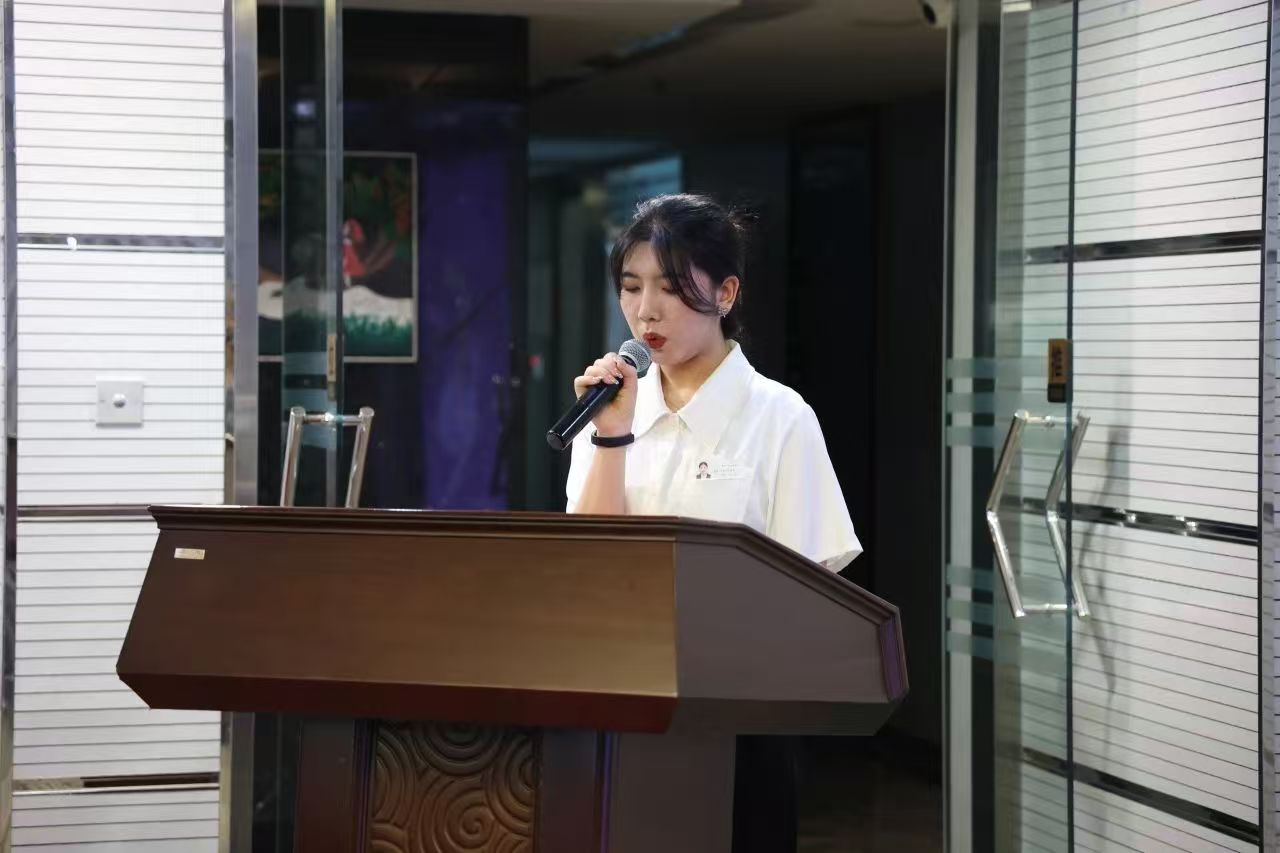 2024屆管培生代表進行新生發(fā)言,表明會努力轉(zhuǎn)變?yōu)橐幻细竦摹皣既恕,無論未來的道路如何,都將與公司同呼吸、共命運,以積極的態(tài)度和不懈的努力,為公司的發(fā)展添磚加瓦。